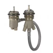 Element zewnętrzny do dwuotworowej baterii termostatowej do montażu na brzegu wanny, w kolorze chromu od marki Axor z serii Citterio. Uchwyty, rozety oraz osłony zawarte są w zestawie. Produkt obsługuje dwa odbiorniki. Element montażowy sprzedawany jest osobno. Przeznaczony do połączenia z oddaloną wylewką wannową.