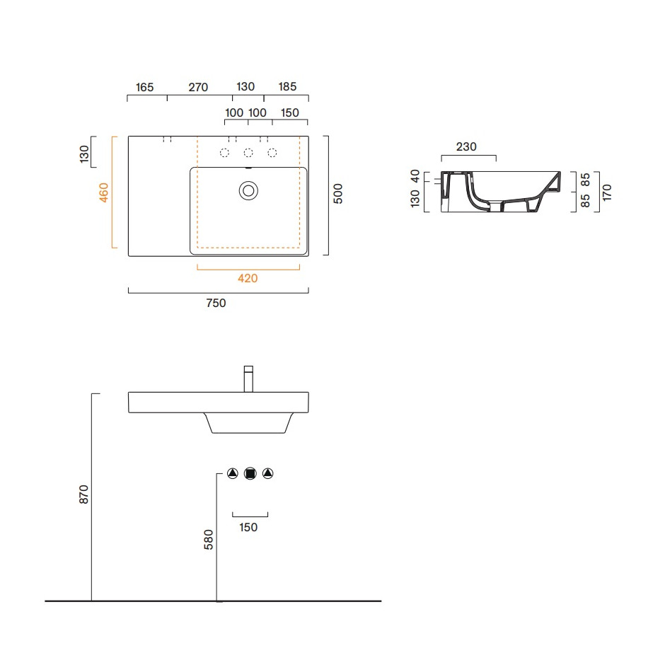 Opis Catalano Zero umywalka 75x50 prawa biały 175DZEUP00 0120780001