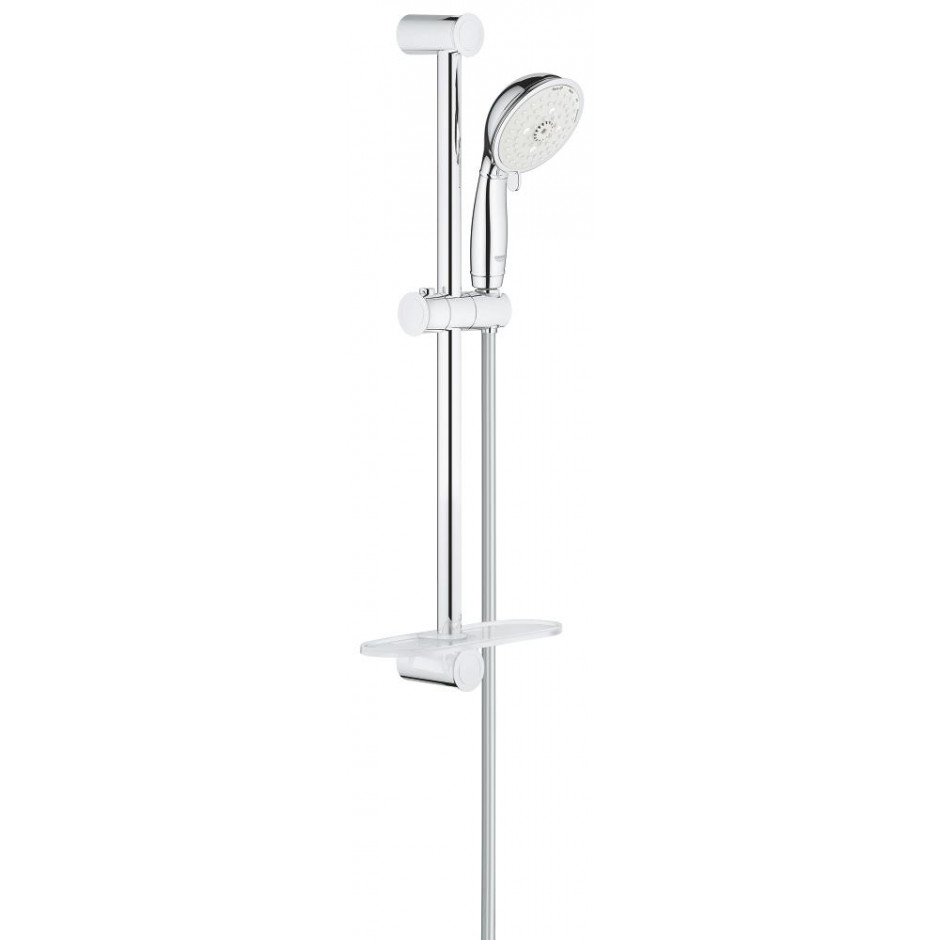 Zestaw prysznicowy z drążkiem ściennym w kolorze chromu od marki Grohe z serii New Tempesta Rustic. Słuchawka prysznicowa, wąż prysznicowy, drążek prysznicowy oraz mydelniczka zawarte są w zestawie. Produkt przeznaczony jest do montażu ściennego. Z powłoką chromowaną Grohe StarLight, która oznacza wieloletni lśniący połysk powłoki armatur uzyskiwany dzięki nieskazitelnej powierzchni odpornej na odbarwienia i zmatowienia.