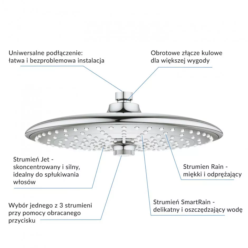 Opis Grohe Vitalio Joy 260 zestaw prysznicowy ścienny termostatyczny z deszczownicą 26 cm Chrom 27296003 26403002
