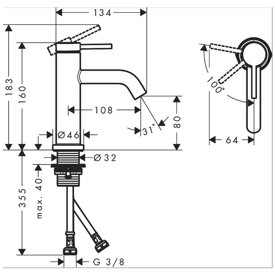 Opis Hansgrohe Tecturis S bateria umywalkowa 80 bez korka Biały Matowy 73301700