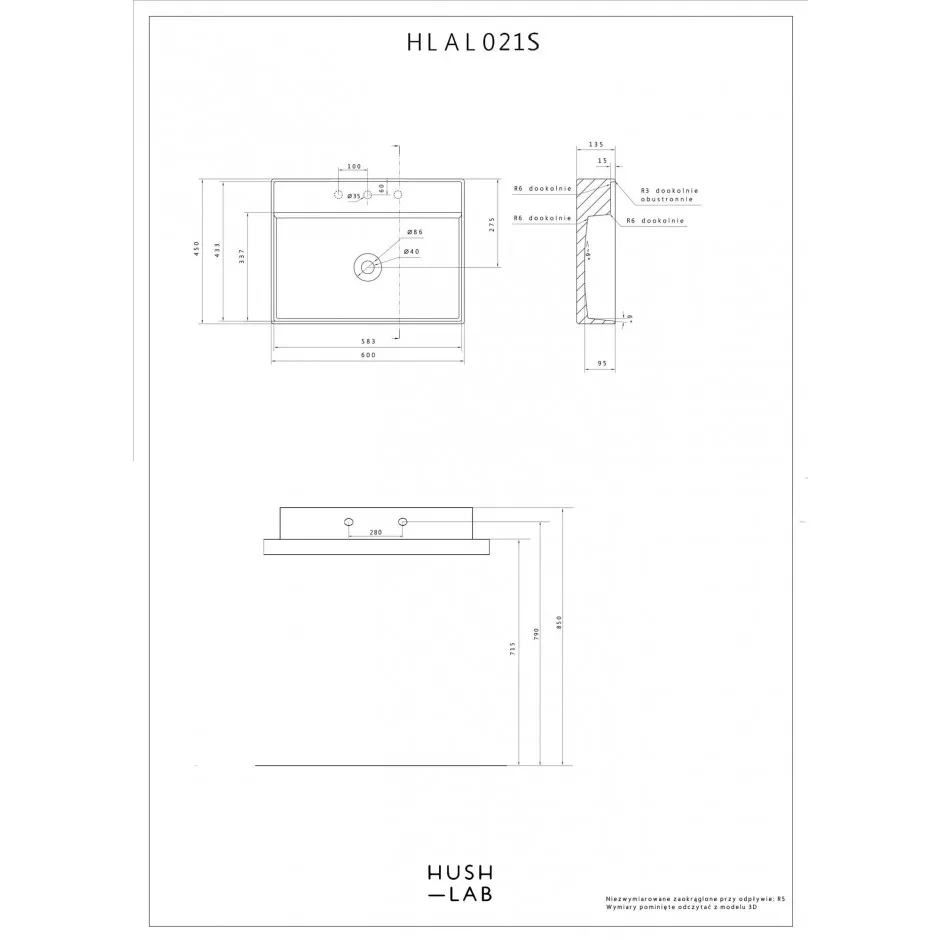 Opis HushLab IN LOVE 60S umywalka wisząca 60X45cm HLAL021S