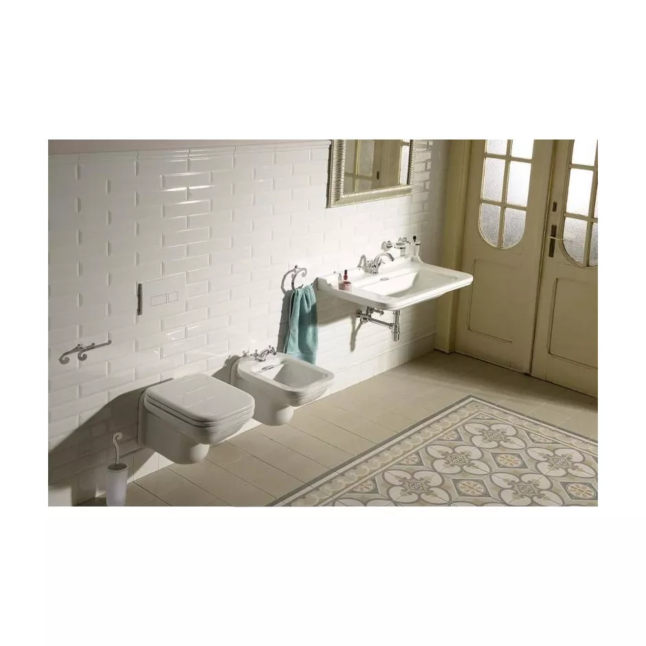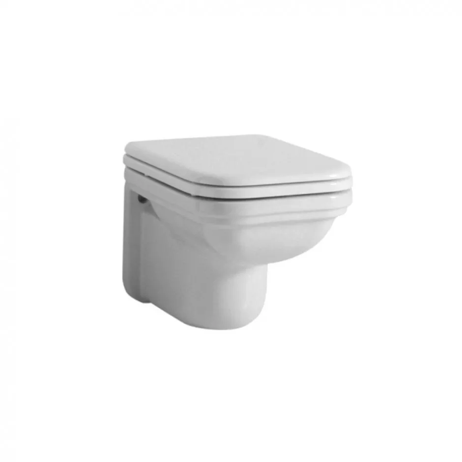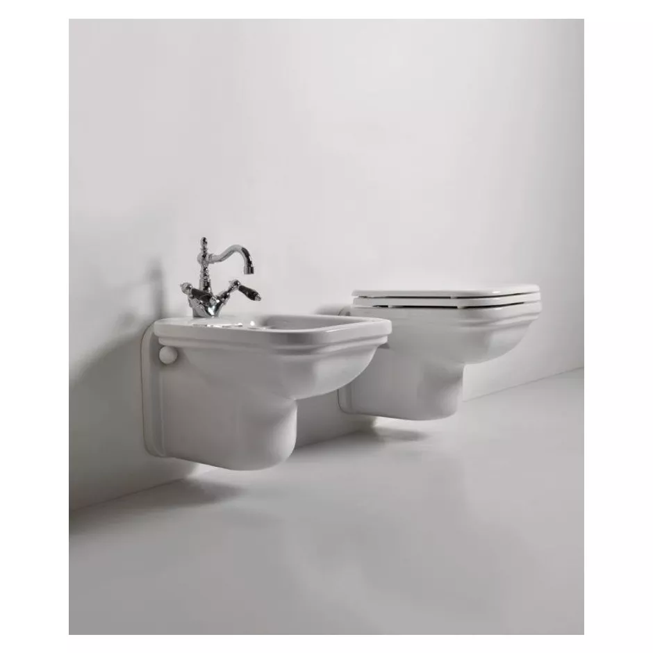 Opis Kerasan Waldorf Zestaw Miska WC wisząca 55x37 biała + Deska sedesowa w/o (411501 + 418801) 411501+418801