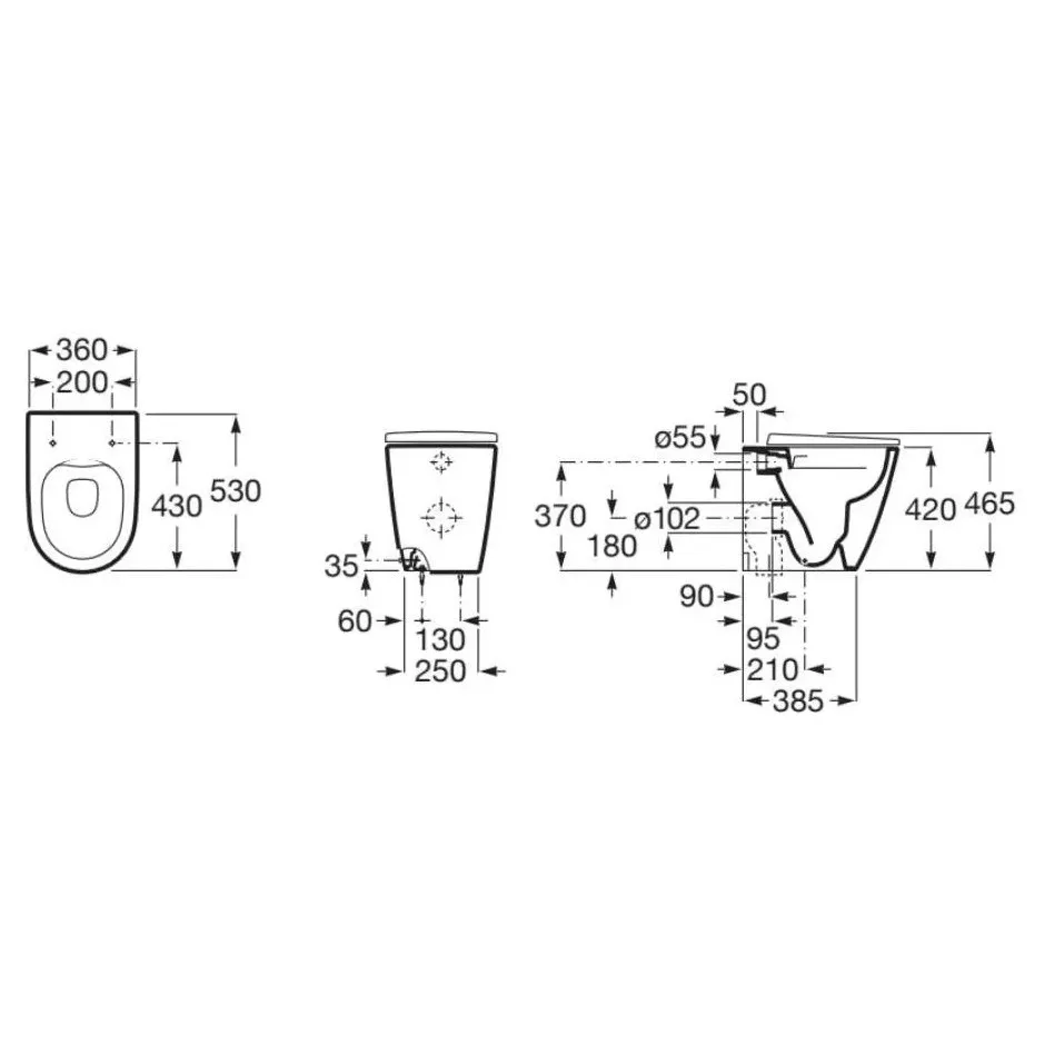 Opis Roca Ona Miska WC stojąca Rimless 36x53 cm biały A347687000