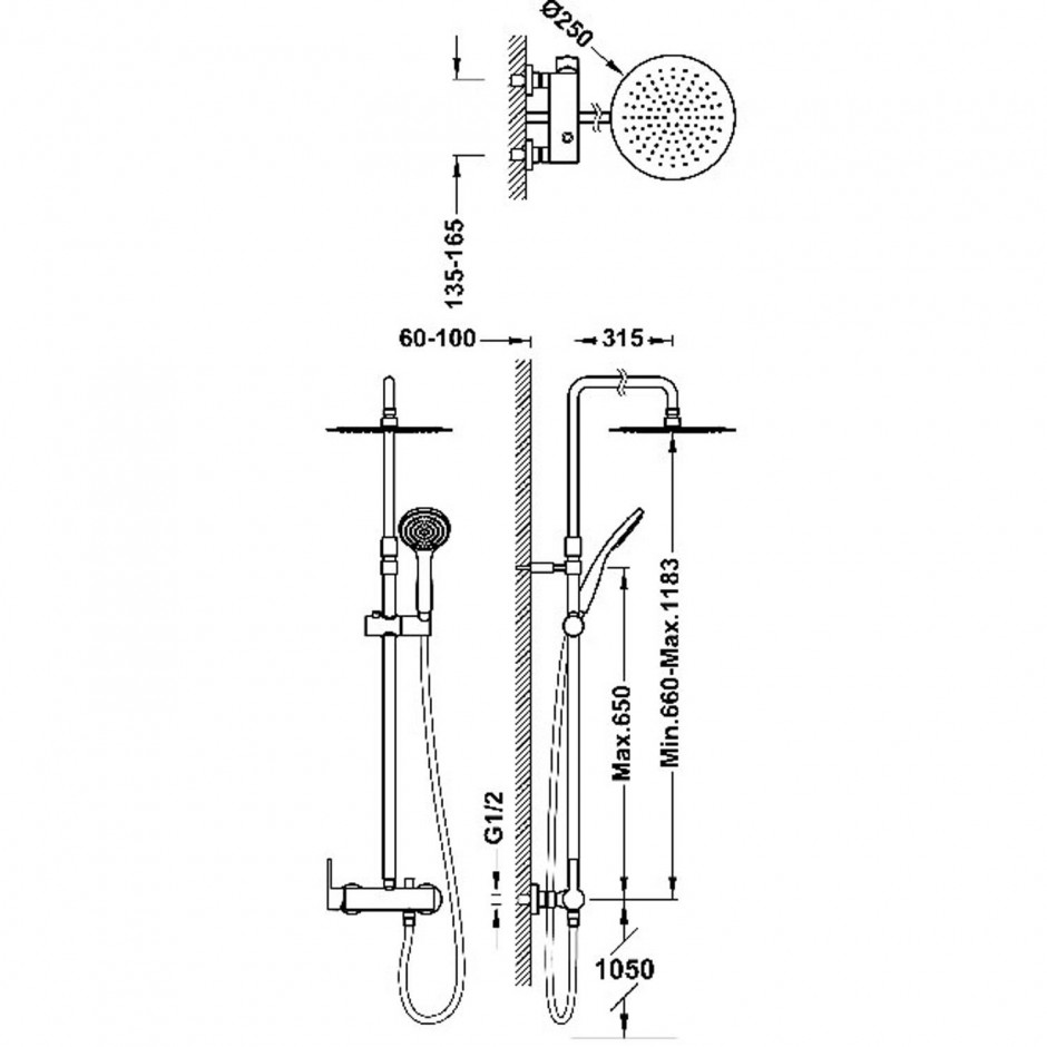 Tres Lex-Alp Zestaw baterii jednouchwytowej naściennej 2-drożnej deszczownica